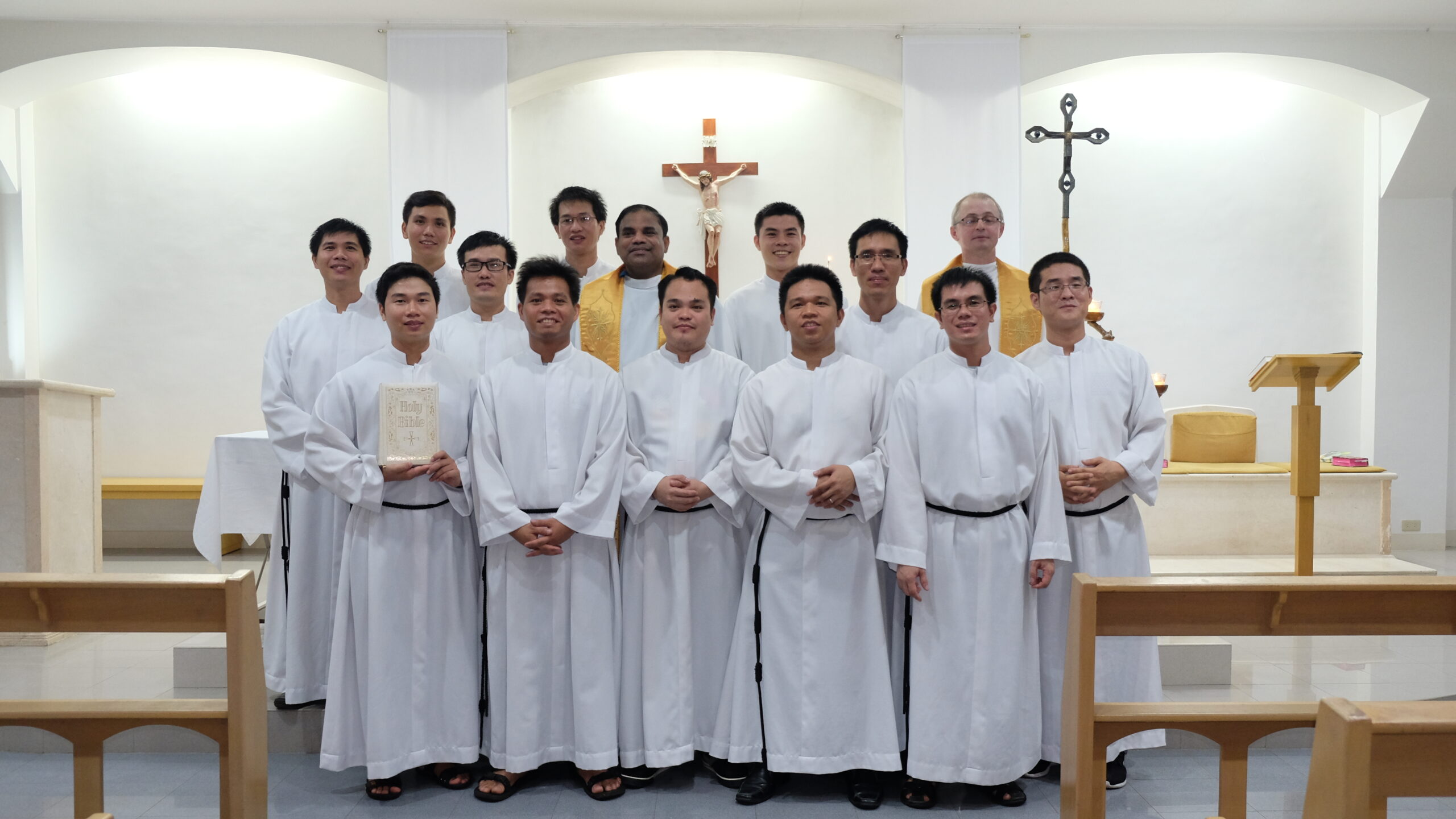 After the homily, the Rite of Institution of Lectors and Acolytes was carried out. It was started by “Calling the Names of the Candidates” for each ministry by the Rector of the House Fr. Vinoy Joseph, SDS. The installation of the Lectors was done first, and followed by the Acolytes’. The brothers who were installed for the ministry of Lectors are: Cl. Paul Duong, Cl. Paul Tin, Cl. Dominic Linh, Cl. Dominic Khanh, Cl. Joseph Cuu, Cl. Andrew Thai, Cl. Adrew Ren, Cl. Jenno Dolor, Cl. James Jimenes, and Cl. Joselito Fernandez. For the ministry of Acolytes: Cl. Florencio Ompad Jr, Cl. Joseph Chinh, and Cl. Paul Ngoc. However, there are also brothers who received both ministries, namely: Cl. Peter Thien, Cl. Peter Hoang, and Cl. Paul Vincent Galgo. Afterwards, the Mass continued as usual.